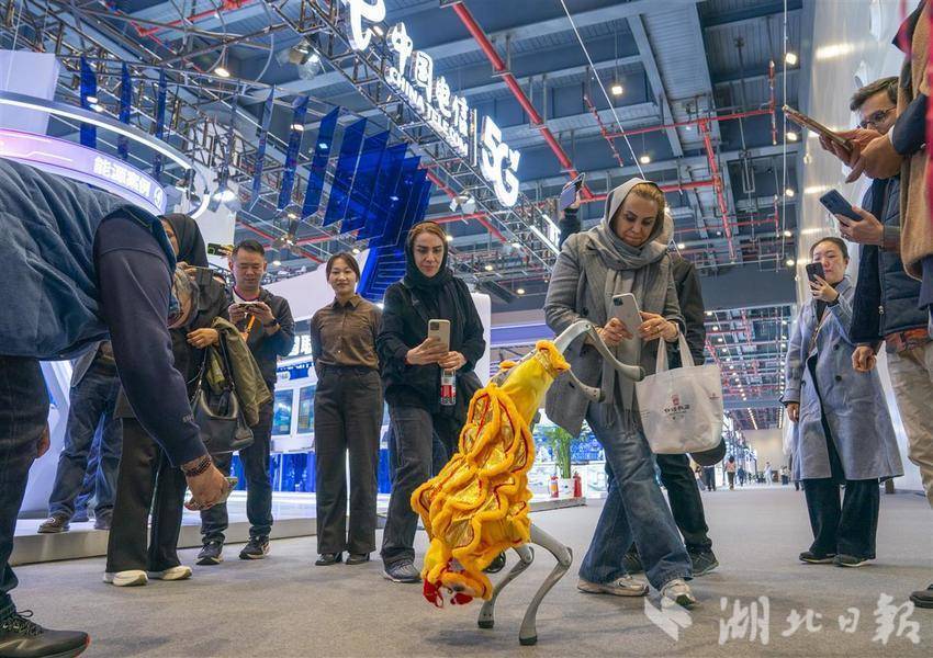 11月21日,中外专业观众在中国光谷科技会展中心参观了5G+工业互联网大会创新成果展。 11月21日至23日,2025中国5G+工业互联网大会在光谷举行。本次大会的主题是“万物互联,智能导航”。这一创新成果的展示面积近9000平方米。通过沙生命沙盘、数字孪生演示、互动体验装置、案例视频等多种形式,全面呈现“5G+工业互联网”在电子装备制造、装备制造、能源等领域的应用成果以及技术突破、解决方案创新等关键内容。让公众体验5G技术赋能行业之美,进一步普及知识围绕“5G+工业互联网”,主办方特别设置了“公众开放日”活动、“工业机器人舞蹈秀”、“AI质检挑战赛”、“5G极速体验”等互动项目,邀请公众近距离体验科技之美。 (湖北日报全媒体记者 韦热 摄)